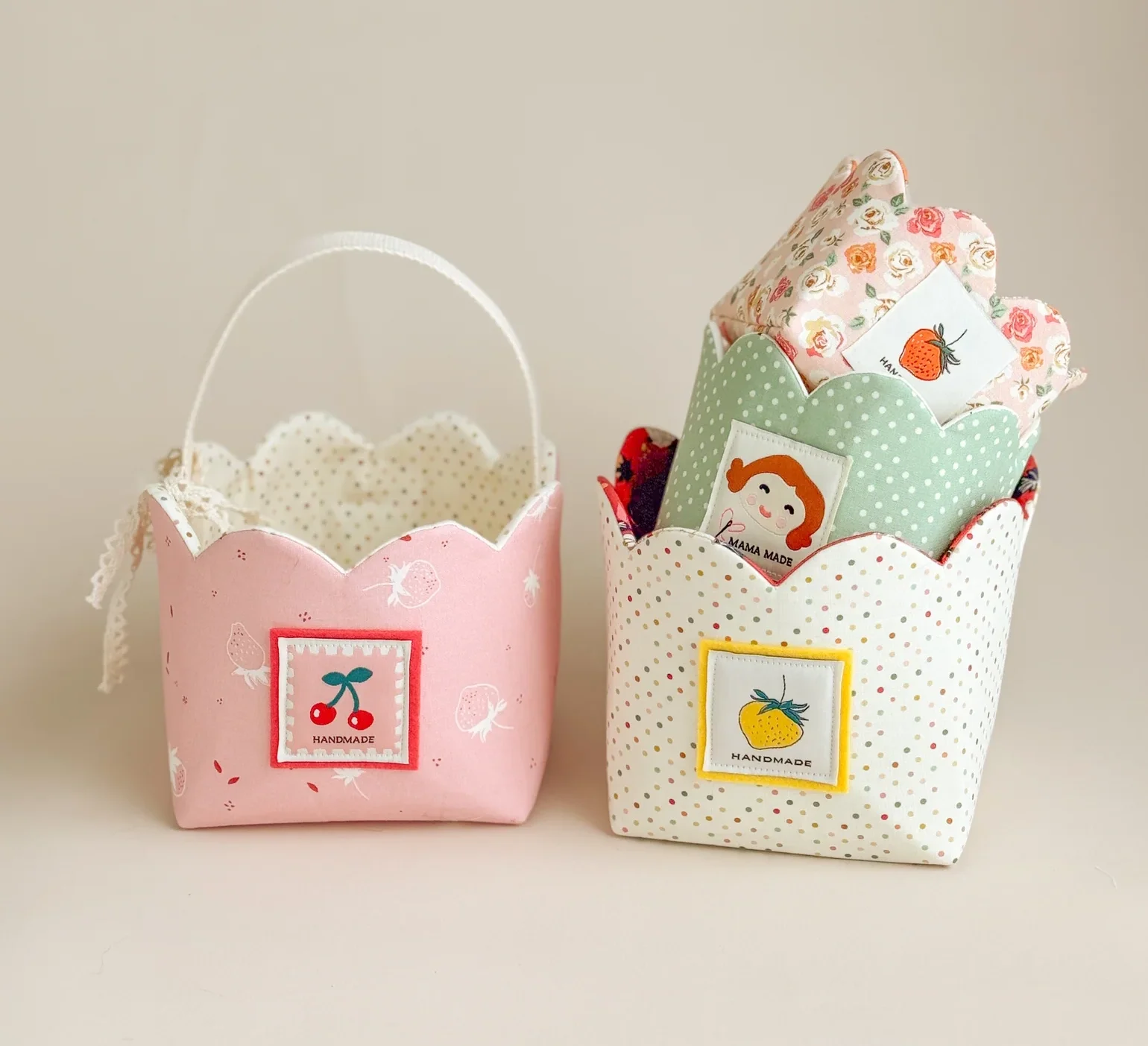This trio of cute little baskets have scalloped edges and optional handles, making them perfect for Easter treats. The baskets are available in three different sizes.