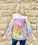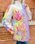 Additionally, Flying Geese Beauties of a smaller scale geometrically mirror on each of side of the coat front.